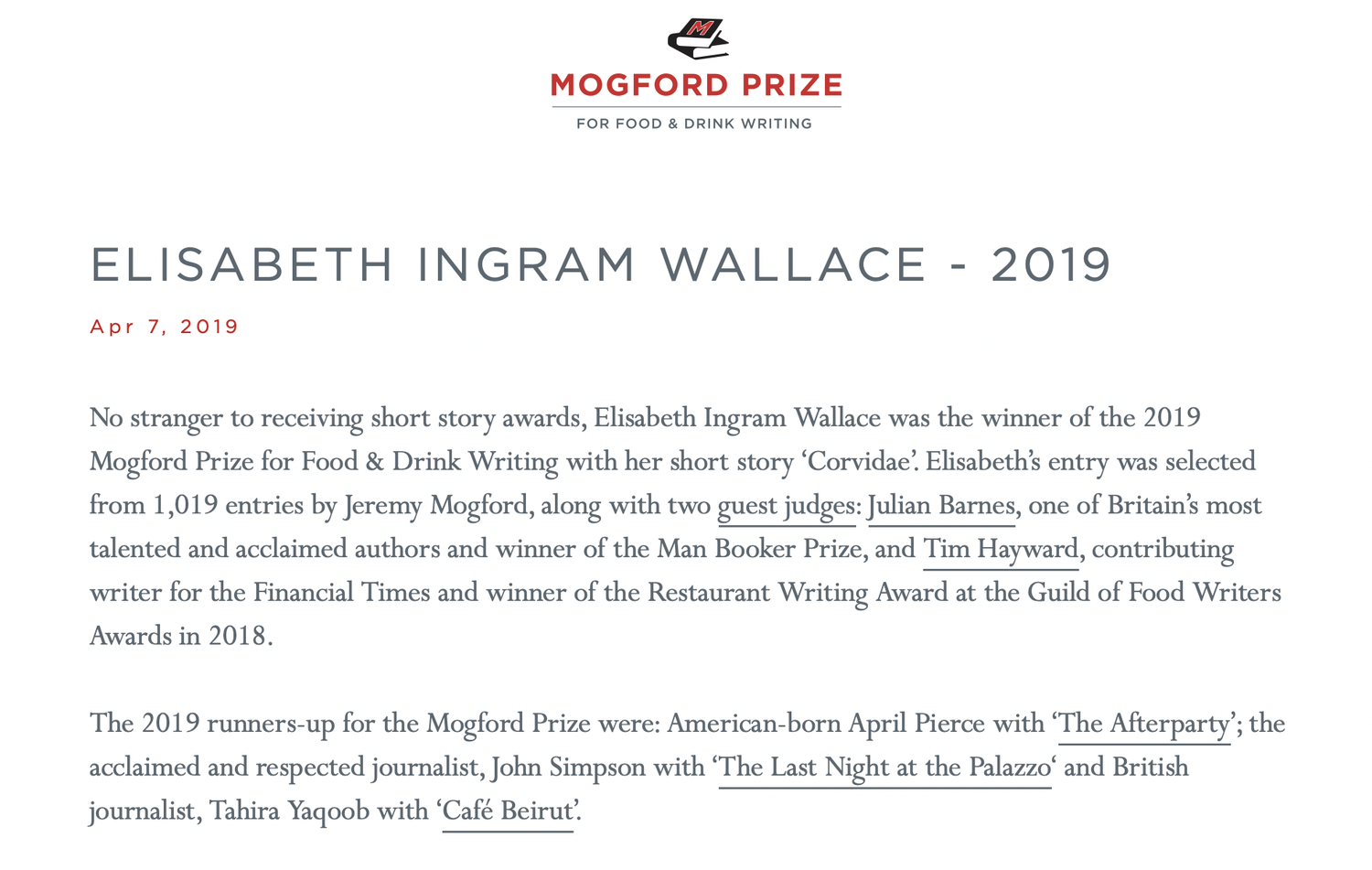 In 2019, I won The Mogford Prize with my short story, ‘Corvidae.’